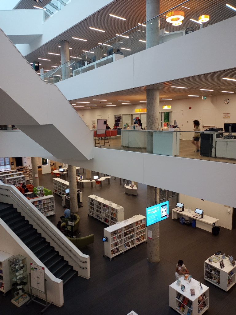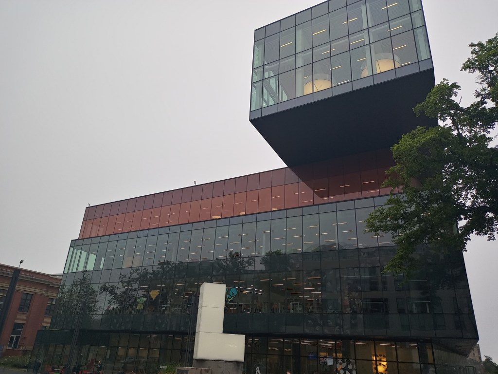 We didn’t have a very eventful drive although it wasn’t the easiest given the occasional downpour and the rest was a combination of mist, fog, and drizzles. We made our wat to the hotel and soon after walked our way to the Halifax Central library which was impressive both inside and out. The kids enjoyed free playtime around the library and we had a quick look at the building. I, of course take my set of pictures admiring the architecture. We made our way to the nearby Casablanca Moroccan restaurant for an early dinner and had the lamb tagine, bastille and some fired seafood/chicken and cheese rolls. We topped it off with Moroccan mint tea but opted out of what would have been a treat of Moroccan desserts. This was partly due to the slightly slow service but also the place was getting rowdy and loud. The place wasn’t anything fancy but the food was delicious, we haven’t had good Moroccan for a long time – seems to be a gap in the Toronto area for that type of cuisine. We did have some good conversation with out 10 year old about his anxiety starting Middle School, bullying and smoking. Heavy stuffy which ended up I think upsetting his stomach and he more than ran into the restaurant toilet (even before the guy before him was able to walk out!).