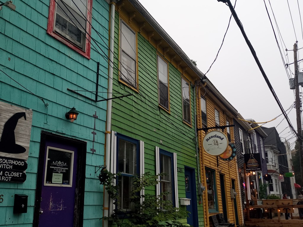 After a small rest and unpacking at the hotel we made our way to St. John for a small walk and a coffee at Second Cup. It was the only thing open, would have been nice to go to an independent café instead but apparently they all shut down early. We did pass by a cool candy store and we each got a treat – lots of funky and nostalgic candy and chocolate bars. Had a quick stroll through foggy St. John downtown. I like it more than Moncton, especially with the nearby ocean, which I couldn’t see much because of the fog but heard the constant screeches of seagulls. It also had more topographical variation with steep hills and older buildings which gave a sense of history in one of the older cities of the country.
