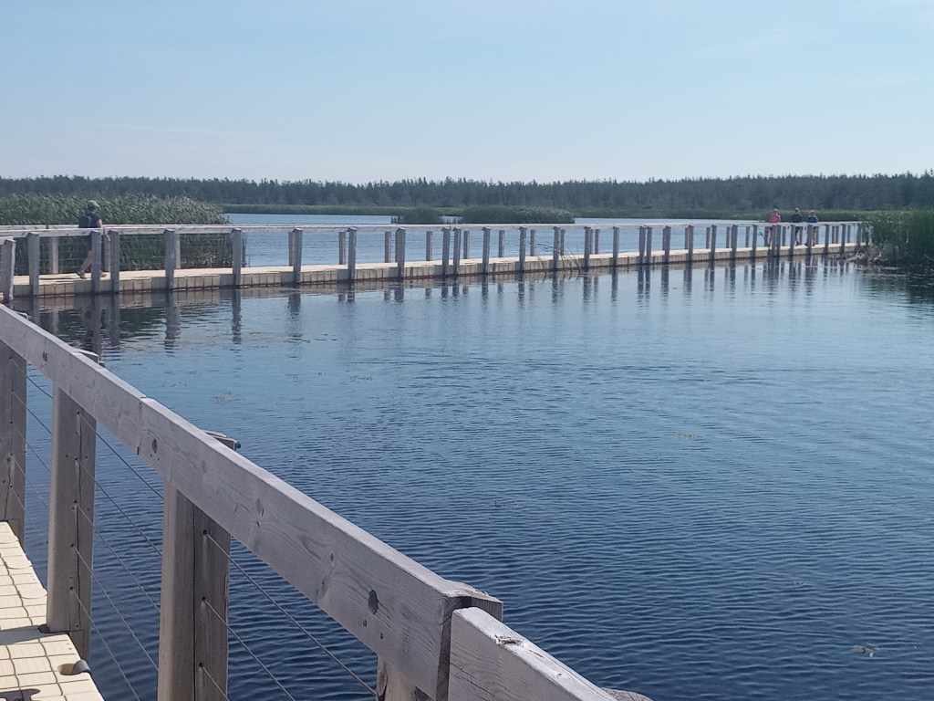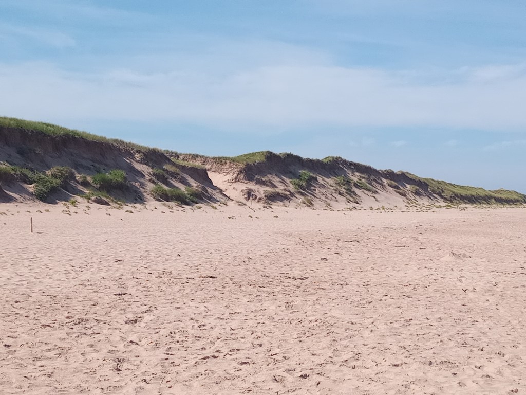 This second day in PEI was eventful, crossed off a couple of PEI related bucket list items. First thing we did after our breakfast was to go to the Greenwich Dunes Trail Park. I have to say though, the dining area of our B&B breakfast was super charming as was the owner who took the time to greet us and ask us some questions about our trip, so the “charming” part of the B&B name is well earned. The drive felt a little longer than expected but we made it early enough to take advantage of slightly cooler weather and a smaller crowd. Learned a few things on my hike, my son is terrified of any insect (which was not ideal – he was muttering and being extra dramatic the whole way through), my wife has a natural phobia for safety where is too protective to the point of being exhausting to deal with both for my kids and myself. My youngest is apparently not a fan of wet things and water in general, which is weird given that we were heading to a beach and walking through a marsh area. So yes…learned a few things…none of them helpful really.