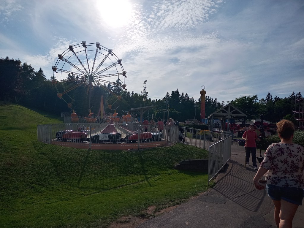 Finished our day at the Cavendish Sandspit Park where the kids rode through some smaller scale rides than what we would find in the Toronto CNE or Canada’s Wonderland. It was perfect scale for our 3 year old though and she had the time of her life I have to say. Today was all about the kids from the beach to the amusement park with some sites for my benefit. But they were so tired out that the little one is in bed already (from the car to the bedroom) and the older one is relaxing on the side sofa – for once not dancing and crazy jumping off our ears and sanity. Off to Hopewell Rocks tomorrow for a final major site to see in the Maritimes before we start to head back home. We’ll be missing PEI, slow paced and quant – a little too slow paced for my linking – but beautiful nonetheless with its rolling farms and beautiful architecture. I was thoroughly impressed with everything I have experienced here.